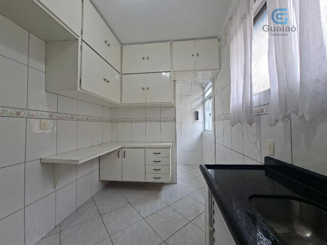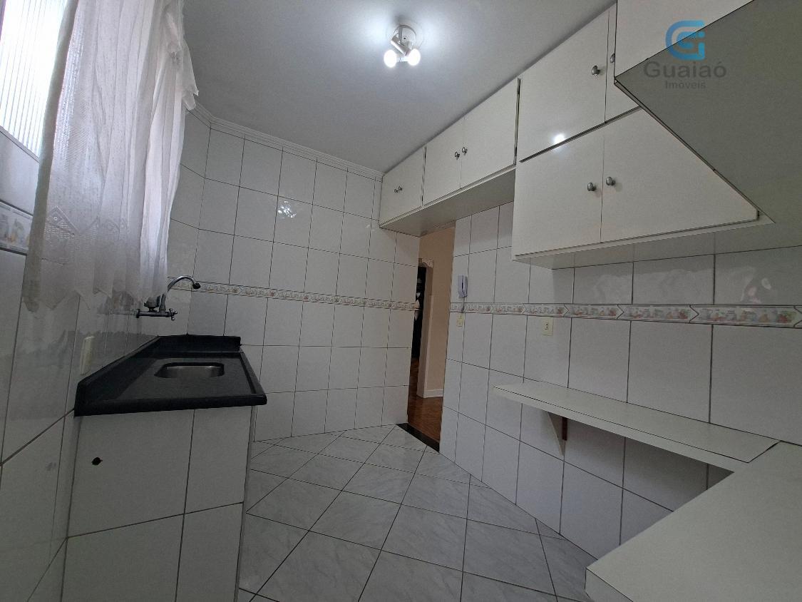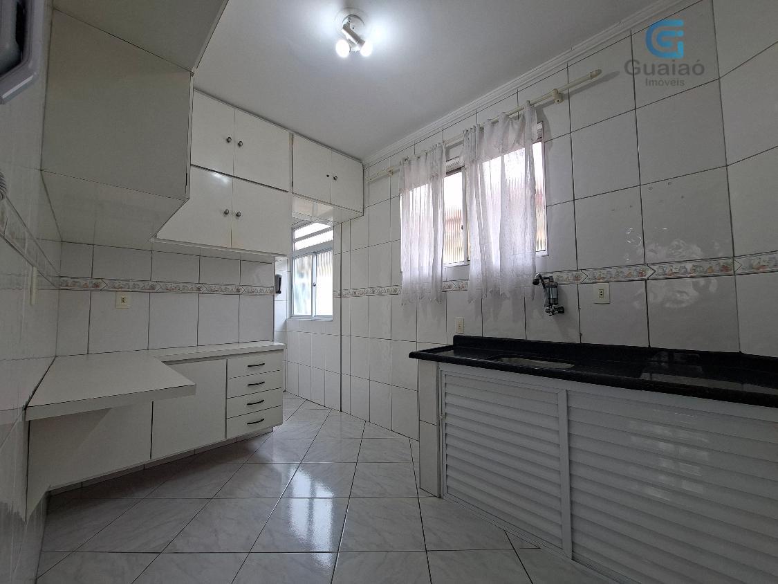 Conta com 2 dormitórios com armários e ventiladores de teto, sendo um deles com bancada, sala p/ 2 ambientes e ventilador de teto, banheiro social com box, cozinha toda revestida e com armários, área de serviços e garagem coletiva insuficiente.