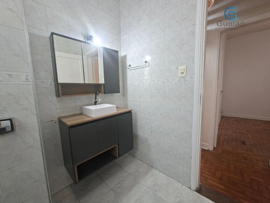 Alugo Apartamento bem localizado em prédio de 2 andares no tradicional bairro do Embaré. Está localizado no primeiro andar com acesso por escadas, 2 entradas independentes, piso em tacos bem conservados e não possui GARAGEM. Acesso controlado por interfone.