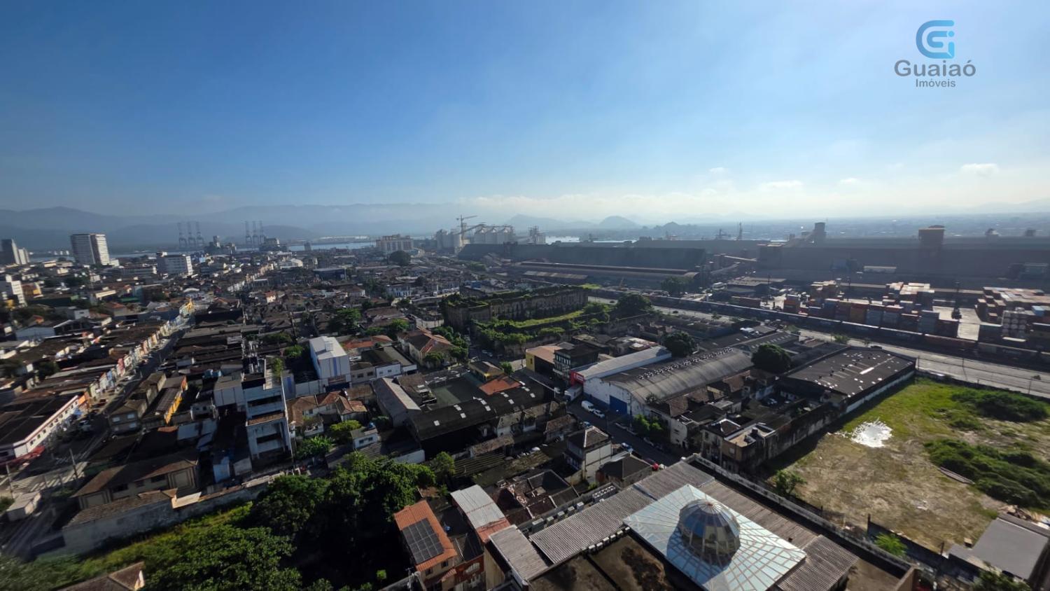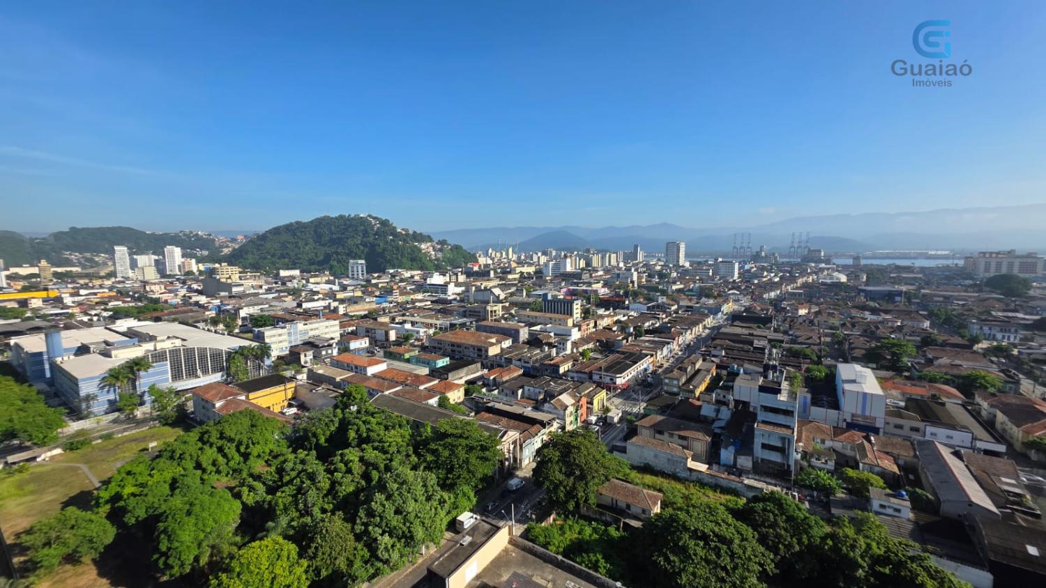 Andar alto, vista livre para o Porto de Santos, bem ventilada e iluminada, com 41 metros quadrados de área útil.